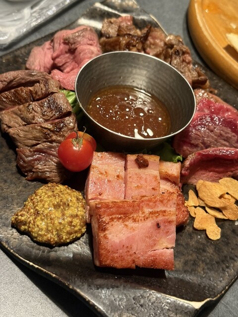 お店の名前にちなんだ『肉盛り合わせ』は黒毛和牛のサーロインや霜降りが食べられる贅沢メニュー