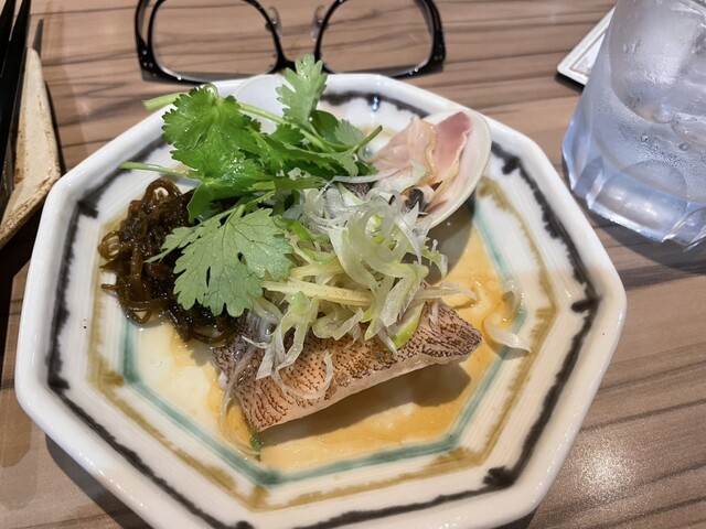 マグロ、ハマチ、水蛸がゴロゴロ乗った茶碗蒸し。味濃い目で酒のあてになります。
