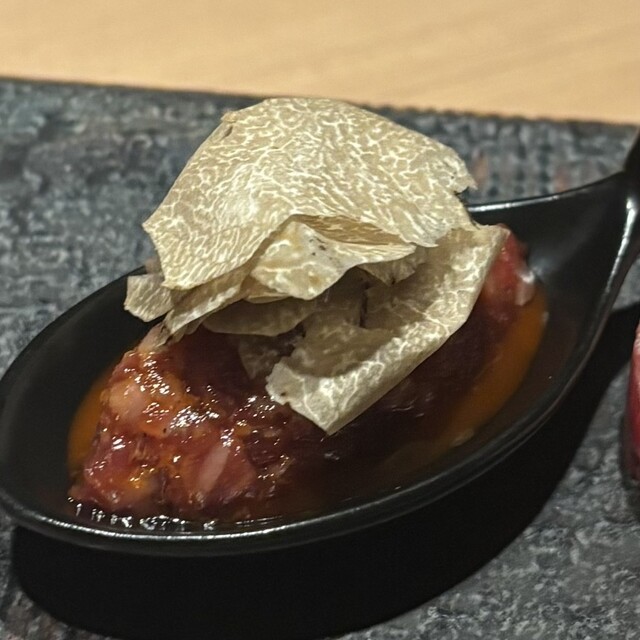 コースの流れも素晴らしく、肉の美味しさを引き立てるタイミングで絶妙なアクセントとなるサイドメニューが提供されます。サイドメニューや調味料の使い方にも非常に気を使っており、それぞれが肉の味わいをより引き立ててくれるので、食事全体のバランスがとても良かったです。肉本来の甘みや風味がしっかり感じられる瞬間が多く、どこをとっても満足感が高かったです。