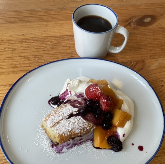 生地が厚くてバターだけでも美味しいパンケーキでした。