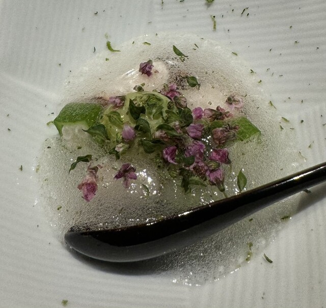 出汁を使わない、素材の味を究極に引き出した日本料理で知られる明寂さん。昨年夏から京都府宮津湾の海水を使用した料理を展開しているそうです。