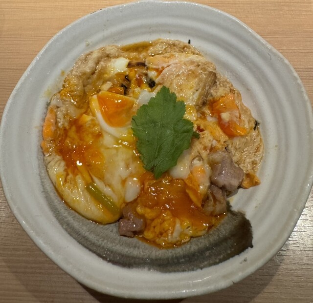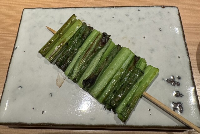 ミシュランガイド東京2025焼鳥部門で、*付き評価2店の一角。福島県伊勢鶏を丸鶏で取扱っているとのこと。鶏の手柄か、近火の強火という鳥しき系の成せる技なのか、比肩ない食感と旨み。希少部位が味わえるだけでなく、ワイン、シャンパン、日本酒と選択肢も豊富。