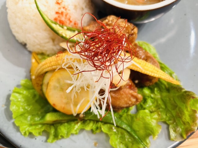 今日は6月限定メニュー(1日10食)の夏野菜と揚げないとりからの中華チリソース