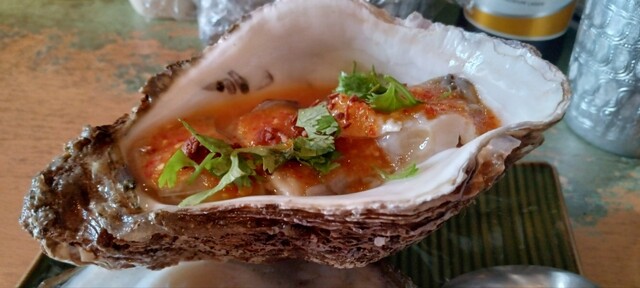 注文したのは、シンハー、ハイボール、ガパオライス、徳島産岩牡蠣です~