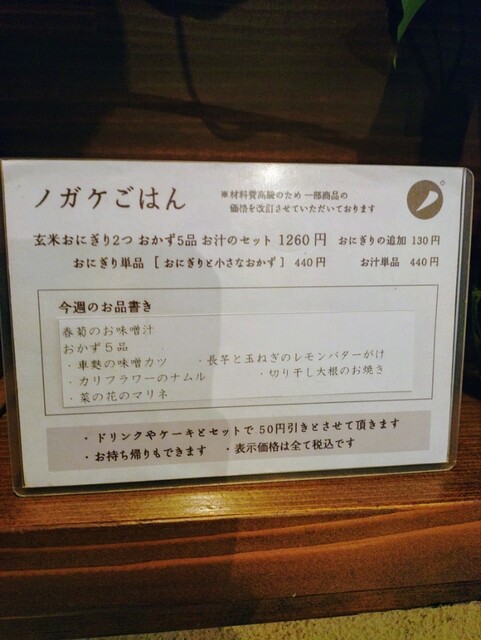 ノガケごはんメニュー表