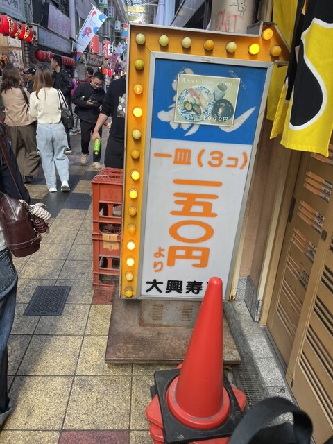 新世界で、有名なお寿司屋さんってことで行ってみました。席に案内されたら、メモ紙に、注文を書いて渡すシステムは、YouTubeで予習してから行ったのでスムーズに注文できました。150円〜のお値段で、美味しい寿司が、食べれて満足でした。