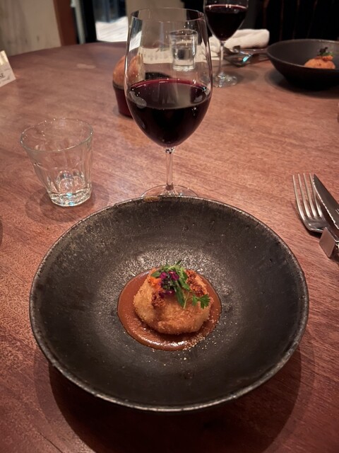ワインのベアリングも用意がありましたが、ワインリストが豊富だったので、敢えて自分たちの好みでお願いしました。ナチュールとは逆をいく様な、口当たりしっかり目のワインが多く揃えてあります。
