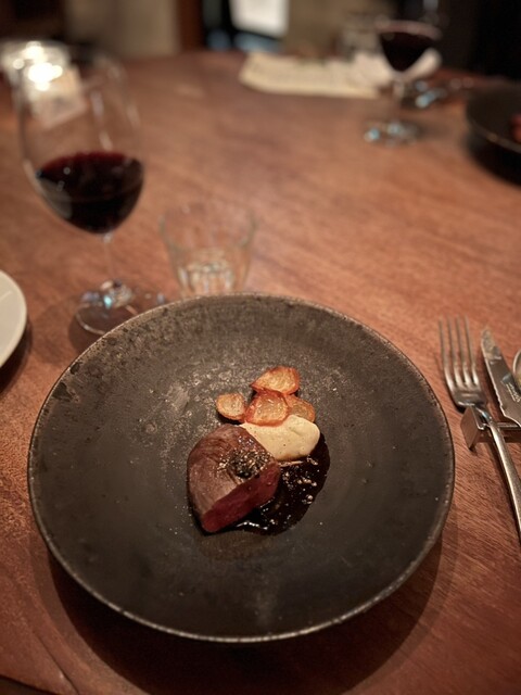 まるで割烹料理をいただいてるかの様な素材だけれども、組み合わせ方と調理法がフレンチスタイルで、心の充足感がなんとも言えません。全体の特徴として、素材のふくよかな甘みを調理法だけで引き出すことにより、ナチュラルに塩とのバランスを取っています。特に、蝦夷鹿のソテーに添えられた百合根のフリットとペーストや、ピラフに使用されたフォアグラとしば漬けの組み合わせは、どちらもシェフの腕が光る品々でした。(実はこれまで食べれなかった苦手食材の雲丹とフォアグラが、こちらのお陰で初めて美味しくいただけました!!感動のままに表現すると、シェフの味覚センスは魔法レベルです笑)