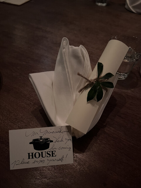 以前から気になっていた西麻布のフレンチHOUSEさん。クリスマスの為に張り切って2ヶ月前予約して伺いました。薄暗い照明とスカンディナビアンなスタイルの店内は、足を踏み入れるだけで暖かさに包み込まれる様な空間です。