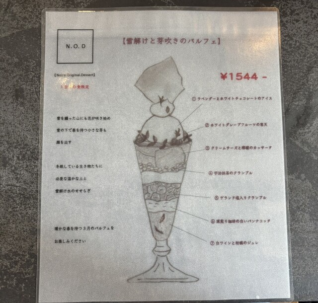 来月からはかき氷になるので、しばらくパフェとはお別れです。そしてノイロの月替わりのシメパフェ全部制覇!