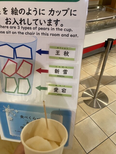 なしっこ館入ってすぐにあるお店で、梨ソフト(小)。めちゃくちゃ美味しかった♪