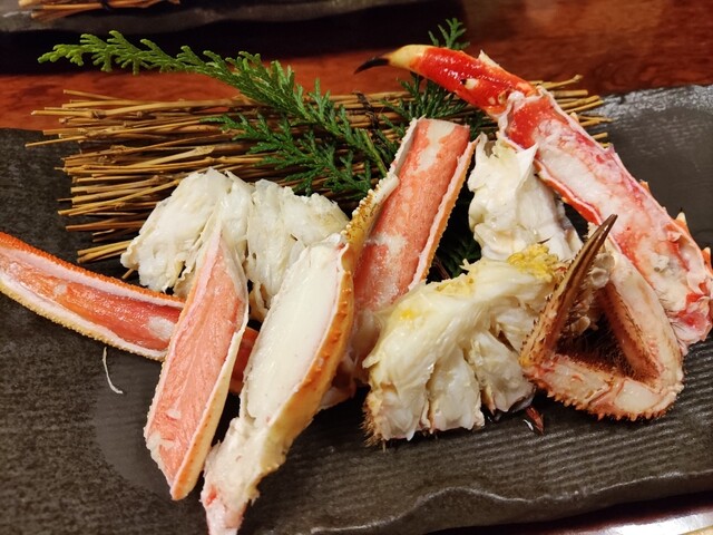 ・籠盛(かにみそ・ミニサラダ・かに刺身)・茹かに味くらべ(ズワイかに・タラバかに・毛かに)・かに茶碗蒸し・かにグラタン・かに寿司・吸物・フルーツ