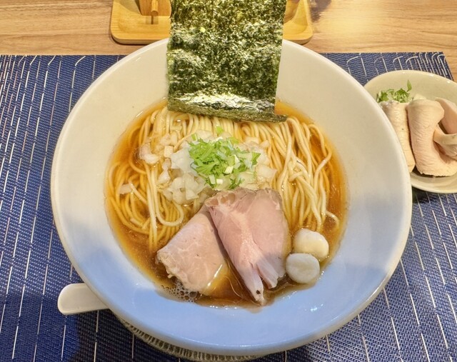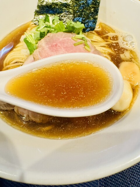 『煮干しソバ』(900円)と『あえ玉』(300円)を注文。ほどなくし着丼。相変わらずきれいな見た目。まずはスープを一口。洗練された煮干し出汁を感じる醤油スープが染み渡る。久しぶりだからこそ美味しさを再実感✨