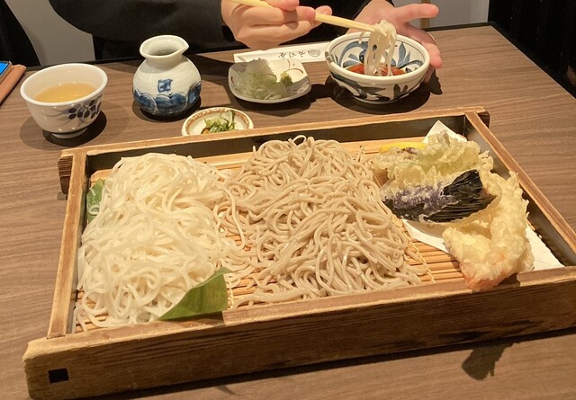更科と十割の2種類のお蕎麦と天ぷら、これも大好き!