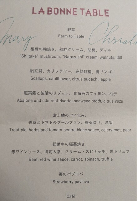 クリスマスのコースを予約、客層もクリスマスムードでした。