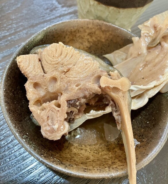 早速あら煮を一口いただくと、あらは頭の部分だったので骨の周りにやわらかな身やコラーゲンがたっぷり!