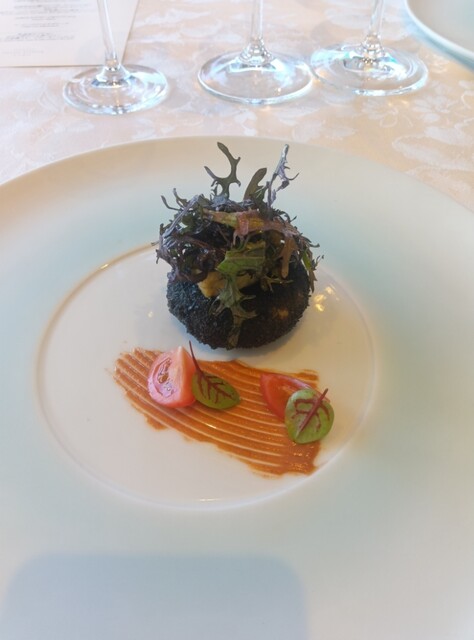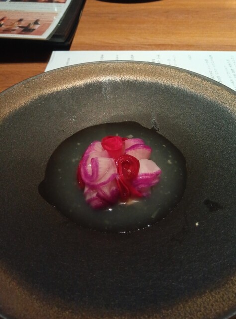 結婚記念日の続編で奥様をご接待。こちらの店はお酒の値段が私にはちと高めなのでペアリング3杯付きのコースにしました。奥様が飲みきれない分も頂こうという魂胆です。