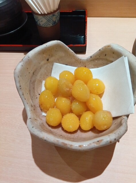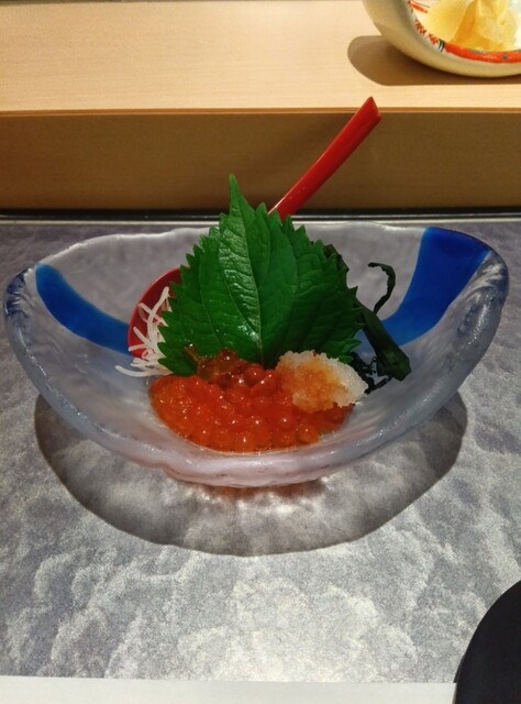 アミューズは一口サイズの炙ったマグロと...