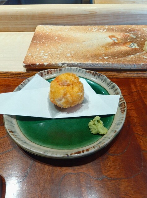 カニクリームコロッケはワサビで頂きます。これはちょっと醤油を垂らしたほうが、よりうまくなりそう。