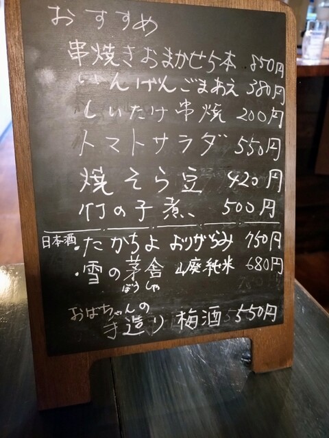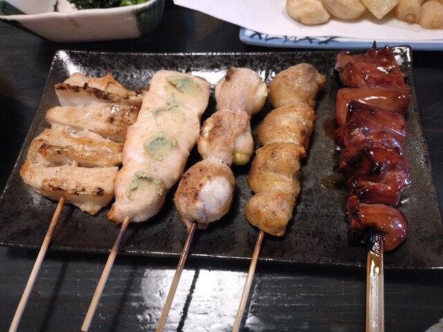 土曜日18時に来店。とりあえず、大将オススメの5本串盛りを注文。梅肉はサッパリした梅と鶏肉があいます。