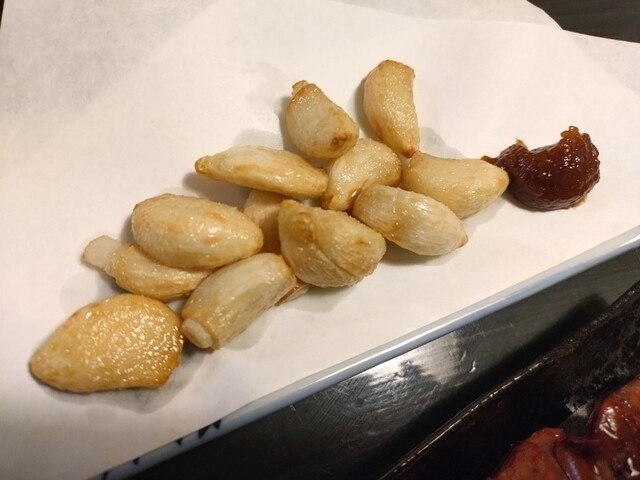 ニンニク揚げは、1つずつ揚げていて食べやすく、味噌をつけてビールにあいます。