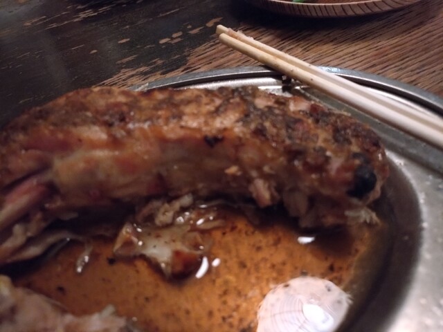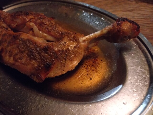 アツアツを食べたいので、1本目を食べ始めて残り30%の時に、2本目のひなどりを注文、5分後にテーブルに到着。今回は、やわらくジューシーな、ひなどりを美味しく頂きました。