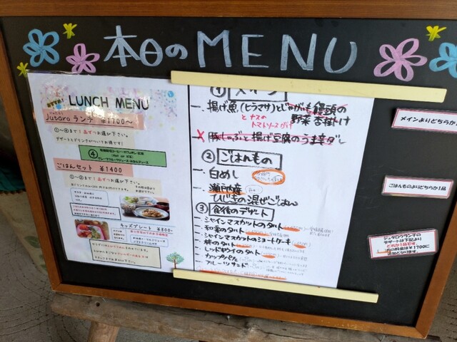 砥部観光センターの敷地内にあるお店。食材にこだわりがあるメニューばかり。Jutaroランチを注文。メインは、ホタテとナスのトマトソース、ご飯ものは、白飯か瀬戸内産ひじきの混ぜご飯から選択出来ます。食後のデザートはシャインマスカットのタルト(450円+)ミニソフト(0円)を注文。食後は有機栽培アイスコーヒー、ホットコーヒーを注文。