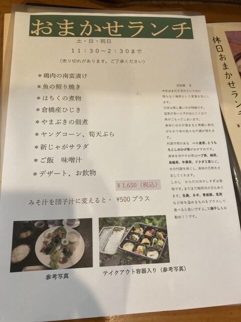 休日おまかせランチのお品書き