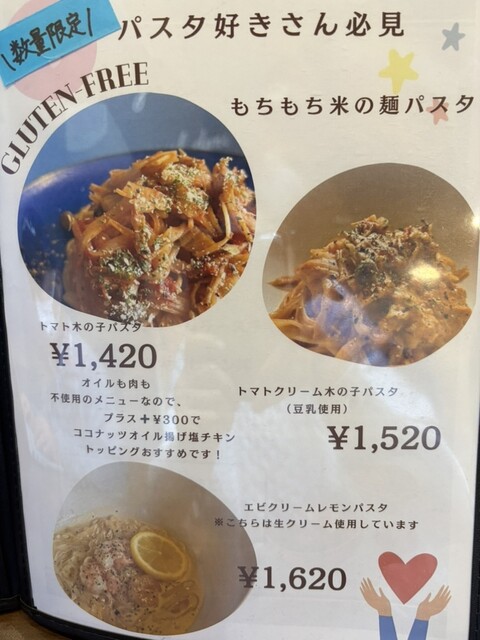 グルテンフリー、白砂糖不使用、保存料着色料不使用、ココナッツオイル使用、アレルゲン表記などなど私の不安要素を全部吹っ飛ばすメニューでなんでも食べれる人のようにあれも食べたいこれも食べたい状態。その中から注文したのは私、有田鶏ハンバーグ定食きのこ麹豆乳クリーム(1870円)と、連れはスタッフ一番人気のヤンニョムチキン(1760円)、デザートは私はムラムラバスチ(紫芋のバスクチーズケーキ693円)、連れはイモイモバスチ(さつまいものバスクチーズケーキ693円)を注文しました。お手洗いに行って店内販売のお野菜やオーガニック商品をウロウロとみて席に戻るともうお料理は席に。