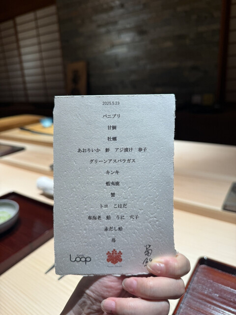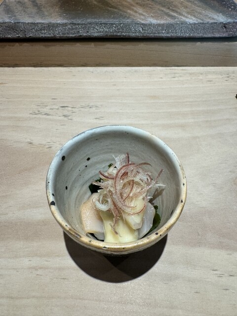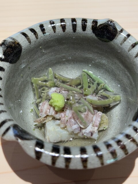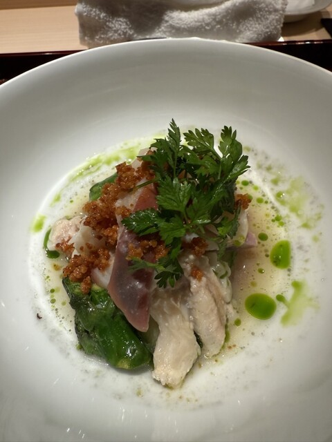 菊鮨のコースは、素材の質と調理の精度が際立つ体験でした。前半は白身魚の繊細な甘みを生かした皿や涼やかな小鉢が続き、季節感をしっかりと表現。中盤には焼き物や酒肴で香ばしさや旨味の厚みが加わり、緩急のある流れに引き込まれます。鮨はネタの鮮度と握りの一体感が素晴らしく、特に雲丹の手巻きや脂ののった赤身は印象的。最後まで丁寧な仕事と程よい余韻が続き、職人の真摯さが伝わる食事でした。