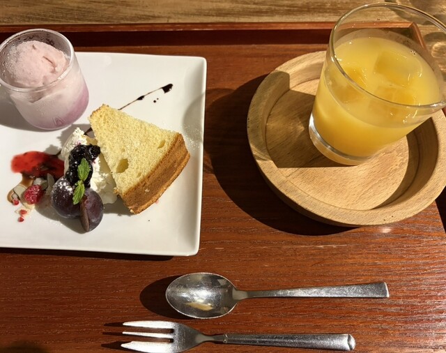 食後に飲み物はコーヒーを相方にはマンゴージュースを頼んでいたのですが、ケーキやアイスなどのデザートと一緒に運ばれてきて、何にも知らない相方にサプライズ