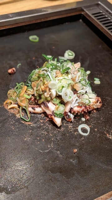 ゲソは身がとっても柔らかくてうまい!たっぷりのねぎとタレが絡み、おつまみにぴったり!
