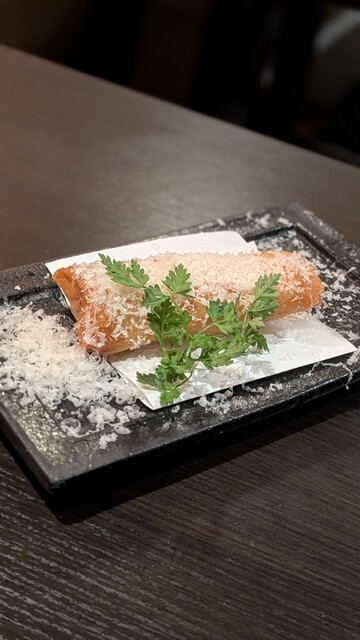 チーズの香ばしさに包まれた春巻きは、サクサクの衣を破ると、ズワイガニの身がぎっしり!カニの風味が口いっぱいに広がり、カニ好きにはたまらない一品です!濃厚なクリームとカニの旨みが絡み合い、まさに至福の一品です