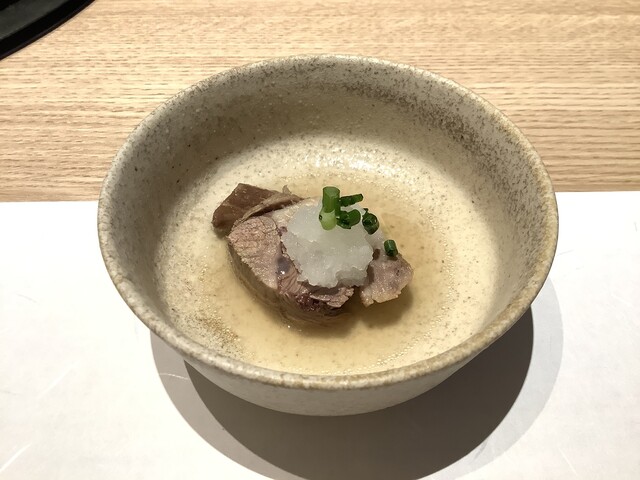 もうメインのしゃぶしゃぶかと思いましたが、肉の量が多いので満足感があって、十分なコース仕立てでした。お肉は脂の質が良いので品質の高さを感じたのと、1枚の大きさがしっかりと高級店の風格を表していました。野菜は彩り良く、さまざまな種類があって美しい。季節によって内容は変わりそう。