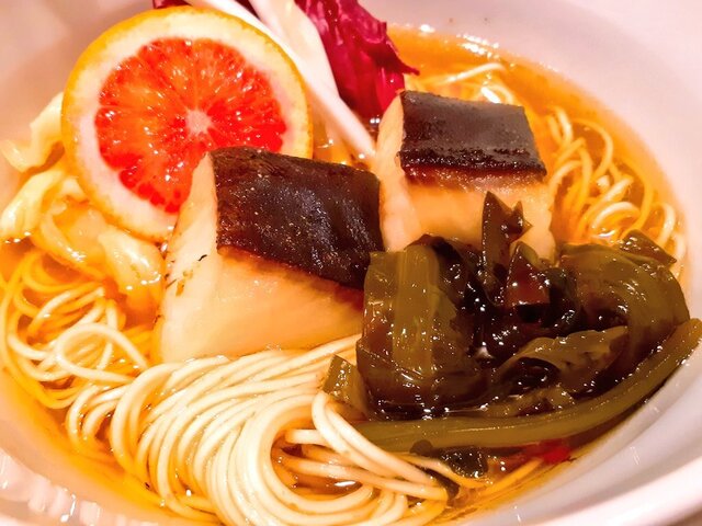 穴子の骨をワインやフォンドボーで炊いたスープはコク深く芳醇な香りを放つ絶品!トッピングの穴子は胡桃パン粉をまぶして焼き上げられ、香り高さとカリッとした食感が新感覚!レッドカラントの酸味がアクセントになって良いですね。ご馳走様でした!