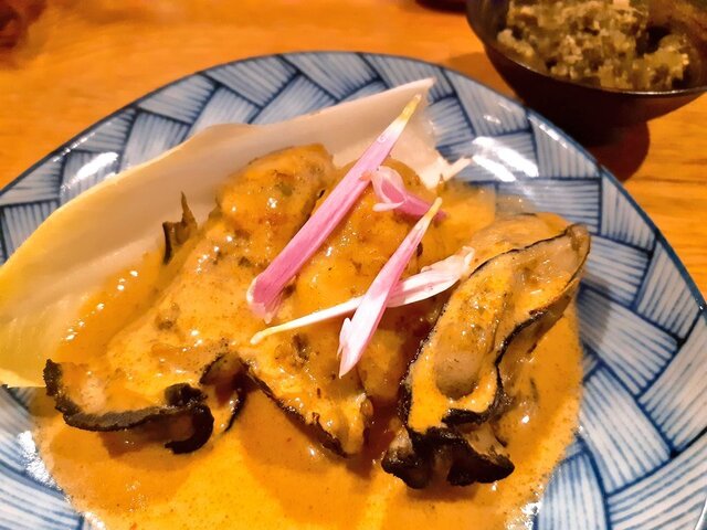 ムール貝の出汁に何種ものスパイスが複雑に絡む重厚なスープが絶品!オイリーながらさらりと優しい味わいでいくらでも飲めそう。スパイスで味付けされた金柑コンポートは甘みと刺激が交差する面白い風味。ご馳走様でした!