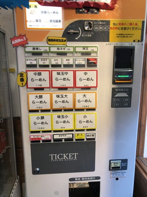 平日10:40に到着、並んでる人が誰もいなく20分待って入店しました。食券を買って、水を入れて一番奥のカウンターへ着席。