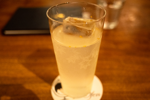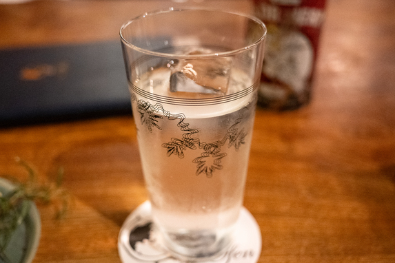 山椒パテドカンパーニュと同じ山椒を漬けたジンのトニック割り。山椒の香りが口いっぱいに広がり,飲みやすい一杯。