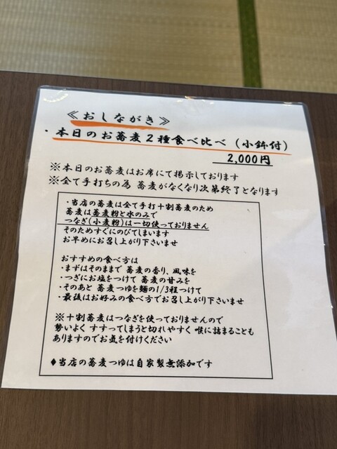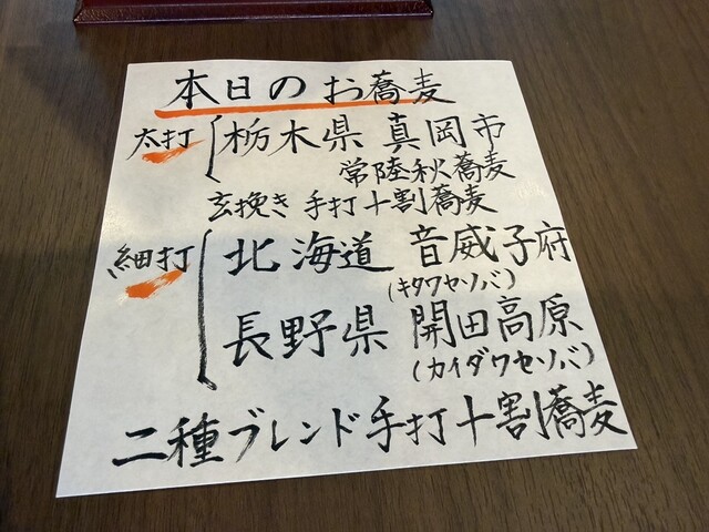 そして2種目は細打で、北海道音威子府のキタワセソバと長野県開田高原のカイダワセソバの二種ブレンドでした。