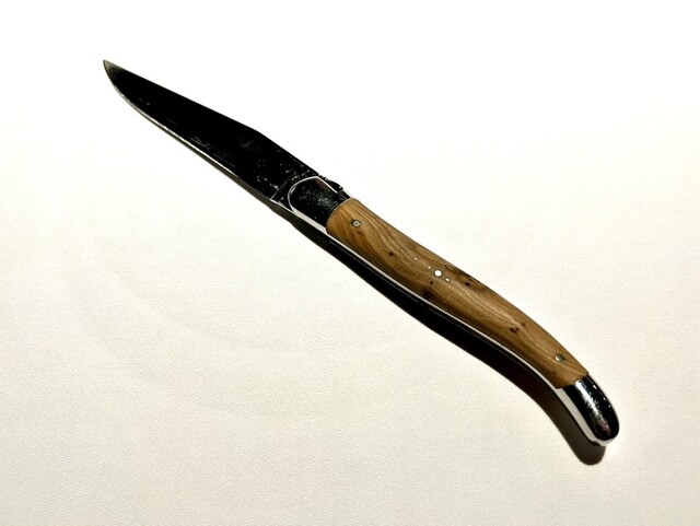 そして、食事スタート前には豪華なBOXに入った、本日の特別な食事のお供をしてくれる、カラフルなラギオールのナイフから1本選んだ上でいよいよ食事がスタートです。