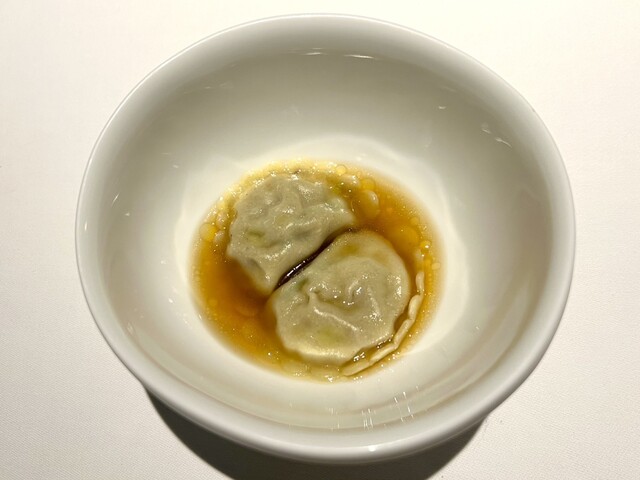 ◆七谷鴨のコンソメ 腿肉のラビオリ 焼きナス
