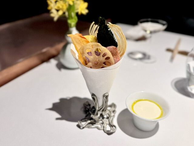 ▪️ 一献 野菜クリスプのブーケと豆腐サワークリーム