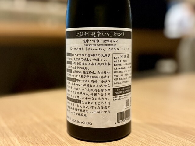 ◉大信州 超辛口純米吟醸/長野(グラス) ¥990-