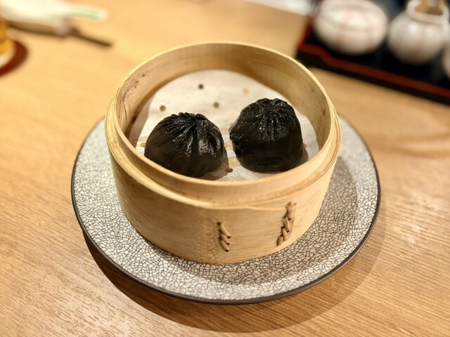 竹炭を練り込んだ生地のピザまんは、香ばしさと軽さのバランスが絶妙で、スタートから期待値を一段引き上げてくる。