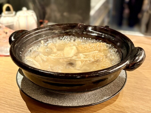 ▶︎▶︎▶︎熱々の土鍋で提供され、餡が沸き立つ演出からすでに勝ち。香ばしいおこげに滋味深い餡が染み込み、食感と旨みのコントラストが秀逸。締めにして満足度が異様に高い一品。