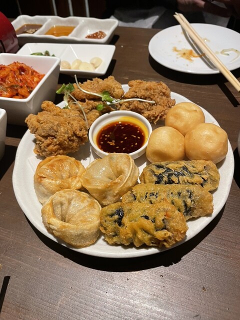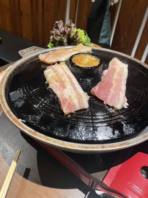 サムギョプサル食べ放題、3,000円、飲み放題はプラス1,500円、予約していただきました。先付けとして唐揚げ、餃子、春巻きなどの揚げ物が通されるものの、乾杯のアテにちょうど適したボリューム。サムギョプサルの豚バラも厚切りであっさりとした上肉。サンチュ、エゴマの葉、キムチ、つけだれ、つぶニンニクの胡麻油フライ、その他薬味のお代わりもOKでこの値段は素晴らしい。スタッフの接客もベターだったしこの店は三ノ宮でも最優良店です。強くお勧めします。