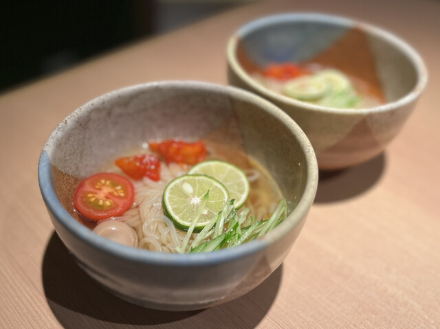 冷麺と自家製デザートは最後に持ってきてくださるのだが、自家製デザートはこの日、「さつまいもとココアのケーキ」。出来合いでなく、その日その日でシェフが準備するそう。