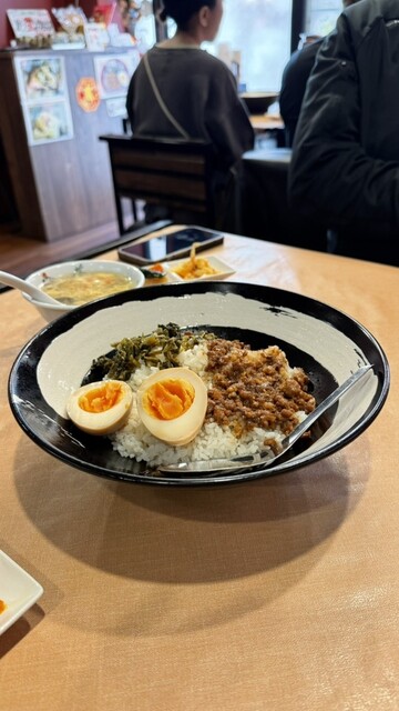 今回頼んだのは、台湾の定番グルメ「魯肉飯(ルーローハン)」!桃源邨さんのルーローハンは、そぼろ状の豚肉、高菜、煮卵が大きなどんぶりにたっぷりのっていて、見た目から食欲をそそります。味付けは日本人にも親しみやすい甘辛い醤油ベースで、八角などの香辛料は控えめ。しっかり濃いめの餡がご飯に絡んで、最後まで飽きずに食べられます。煮卵や高菜との相性も抜群で、全体のバランスがとても良いのが印象的。台湾夜市の雰囲気を感じながら、ほっとする美味しさを味わえました!お手頃価格でボリュームもあり、ランチにもぴったり。台湾料理好きはもちろん、初めての方にもおすすめの一品です。