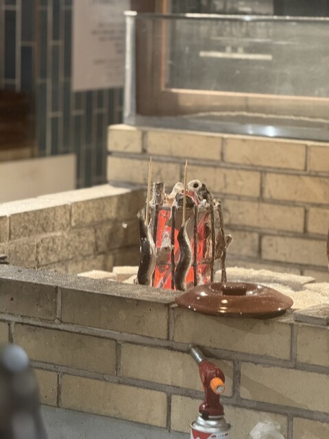 メインの原始焼き(トロイワシ)は炭火でじっくり焼き上げられており、表面はパリッと香ばしく中はしっとりジューシー。炭火の遠火で焼く伝統的な調理法による旨みの凝縮具合が素晴らしい。