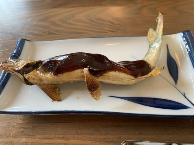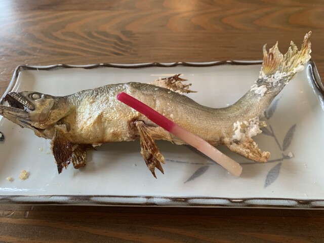 鮎の塩焼きの尾鰭が折れてしまったので、追加で一匹サービスしますとお店から仰ったので遠慮なく頂いちゃいました。サービス頂きありがとうございました、